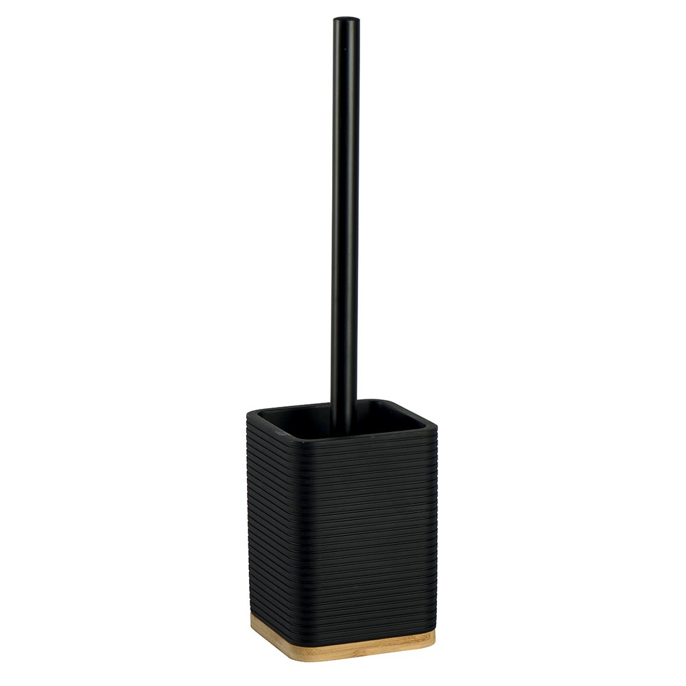 Balai brosse en résine noire mat et bambou et manche en acier inoxydable noir mat