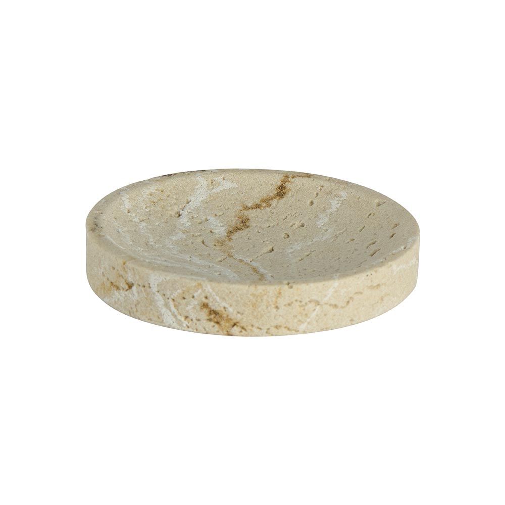 Porte-savon en résine imitation marbre rose.