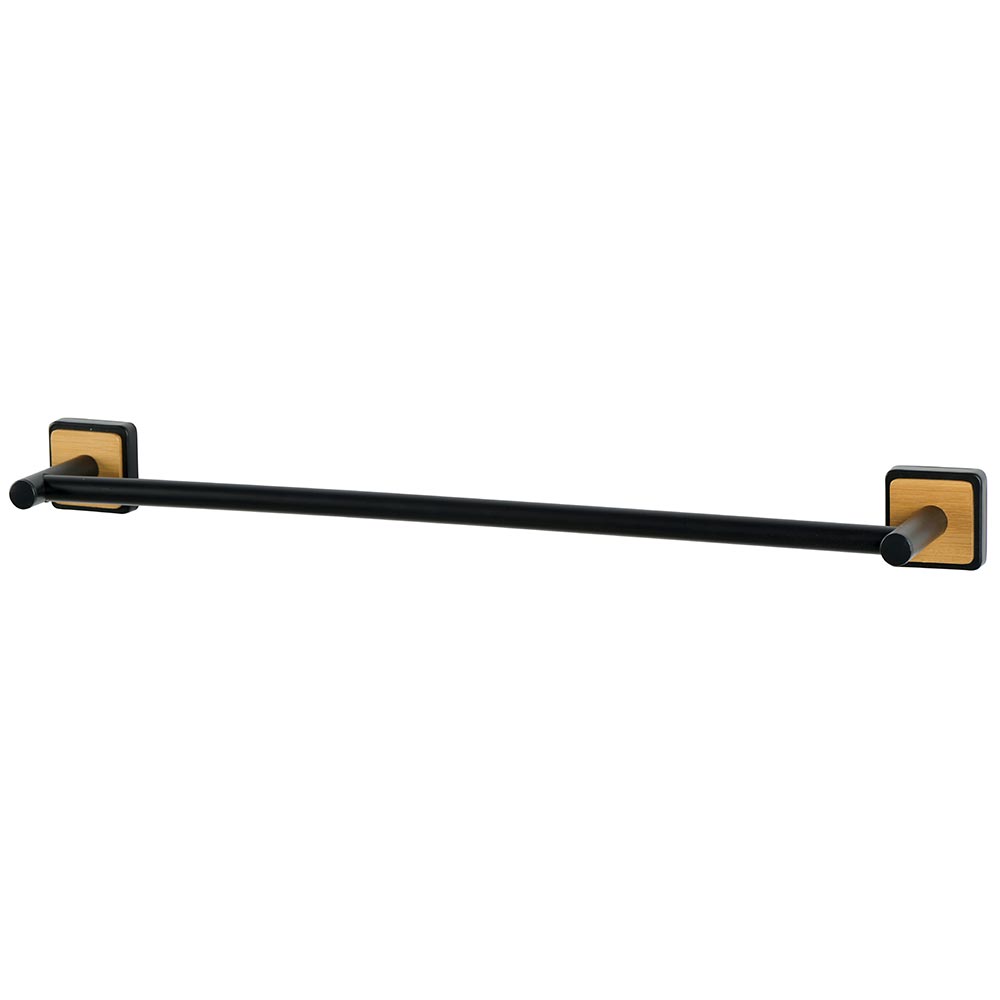 Barre porte-serviettes en métal noir et attaches en bambou .