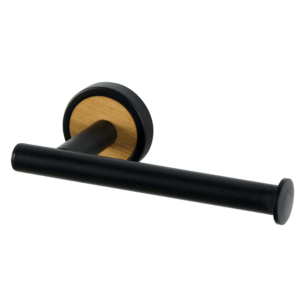 Support mural papier toilette en métal noir et attache en bambou .