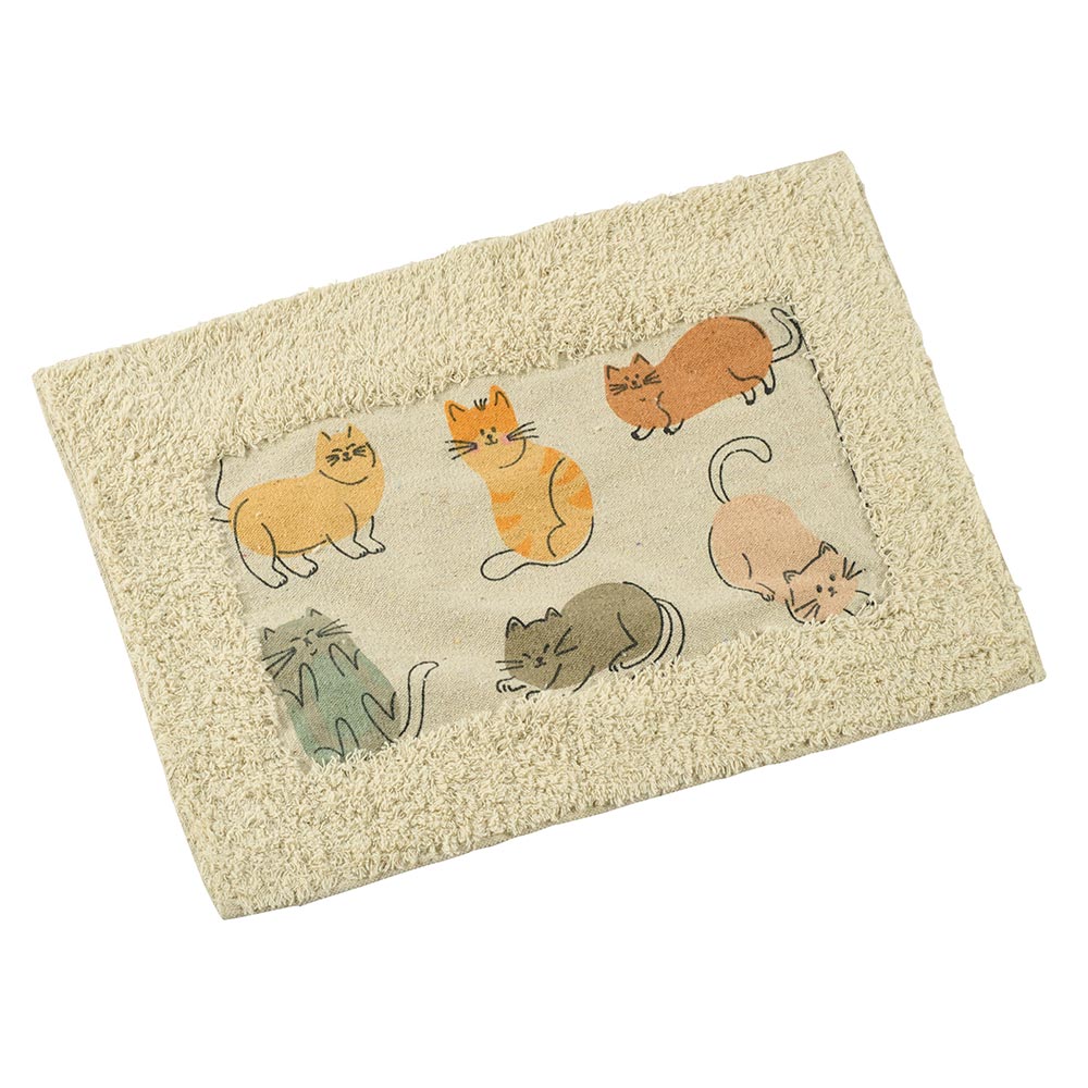 Tapis rectangulaire en coton motifs chats colorés au design estival.