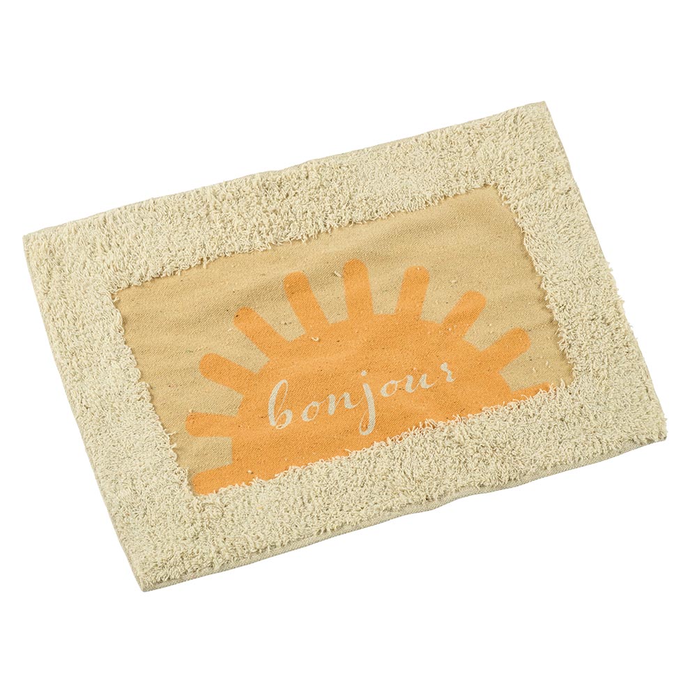 Tapis rectangulaire en coton jaune orangé au design estival.